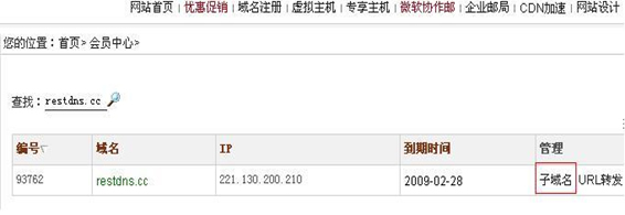点击子域名进入解析界面: